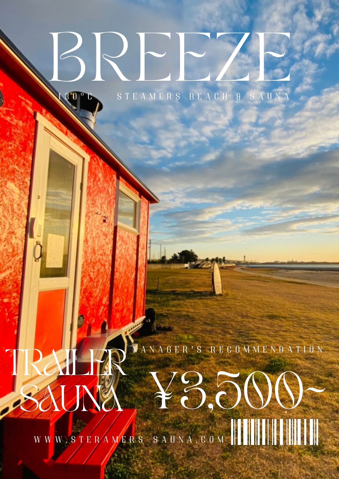 Steamers Beach & Sauna®︎のトレーラーサウナ「Breeze」貸切プランになります。