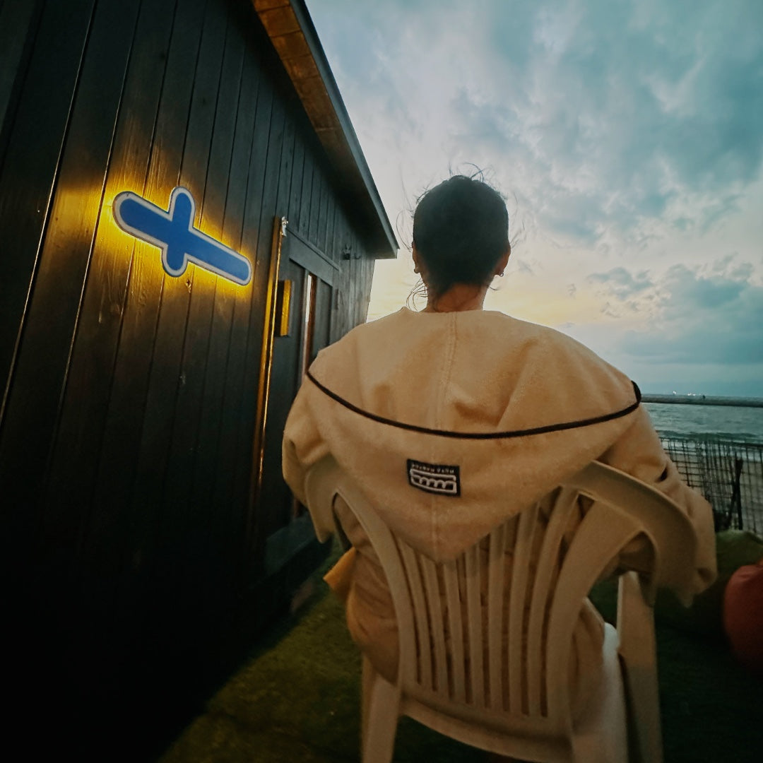 rebootでは、サウナの導線を意識したデザインを心がけているため、ポンチョは作りません。