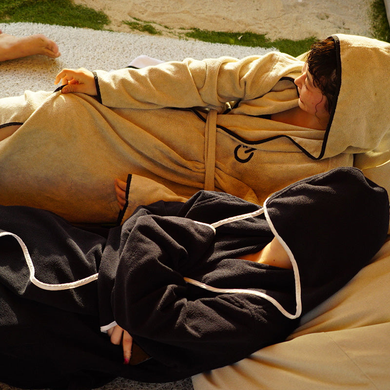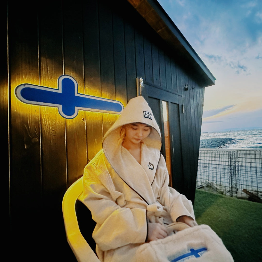 綿100%で吸水性にも優れ、サウナの後はもちろん、家でもずっと着ていたくなるような着心地に仕上げました。